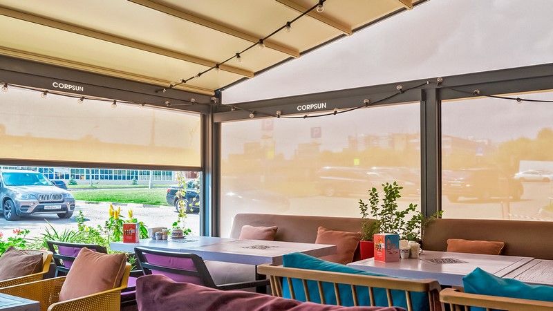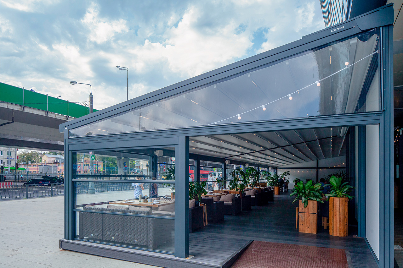 Corpsun - motorized and expandable systems. Our designs are fully adapted to different climatic conditions: they are resistant to temperature fluctuations, humidity, and burning sunrays.